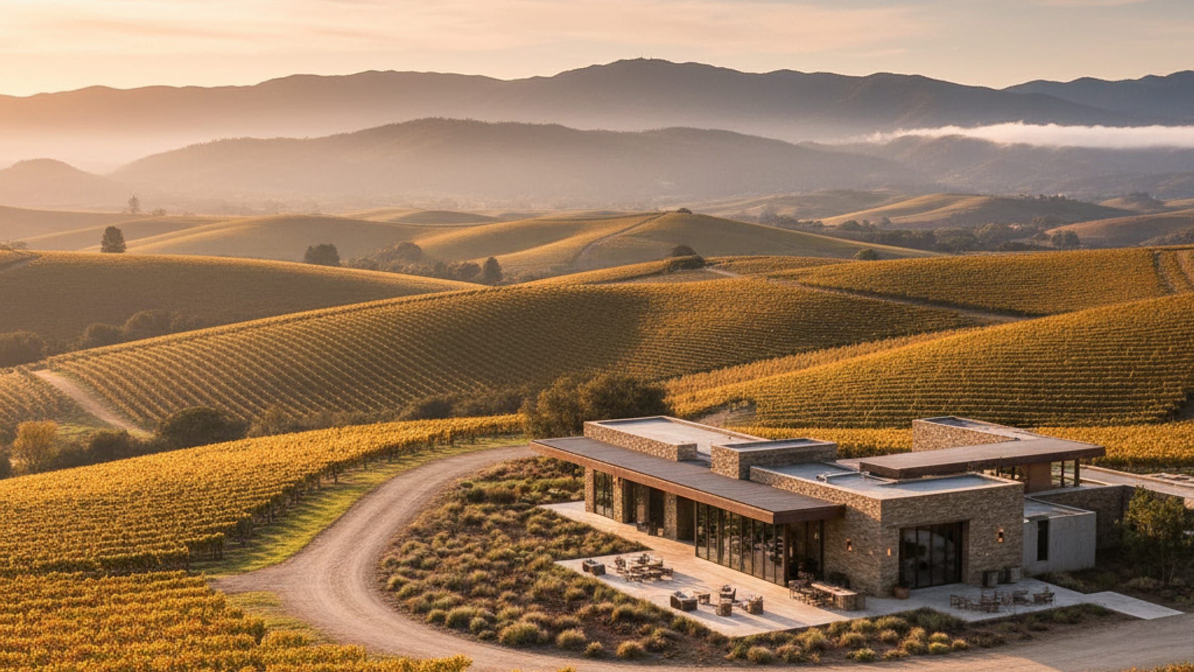 Renowned wine region with rolling hills and rural estates.